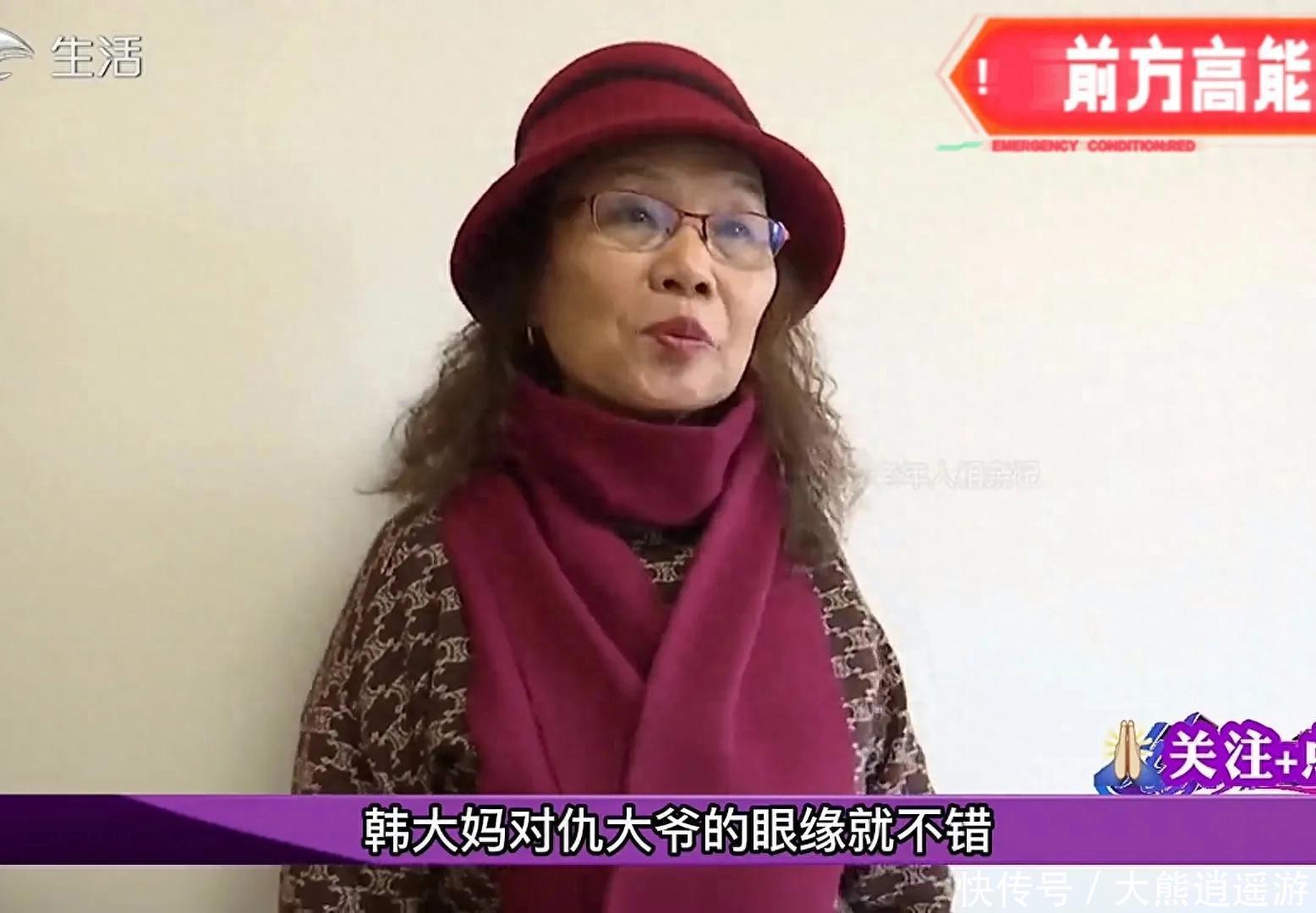 仇大叔认为韩大妈孤身一人生活不容易,这可以看出来她的性格也是独立自强的,这对于做老伴来说是加分的,挺好的,满意、满意。