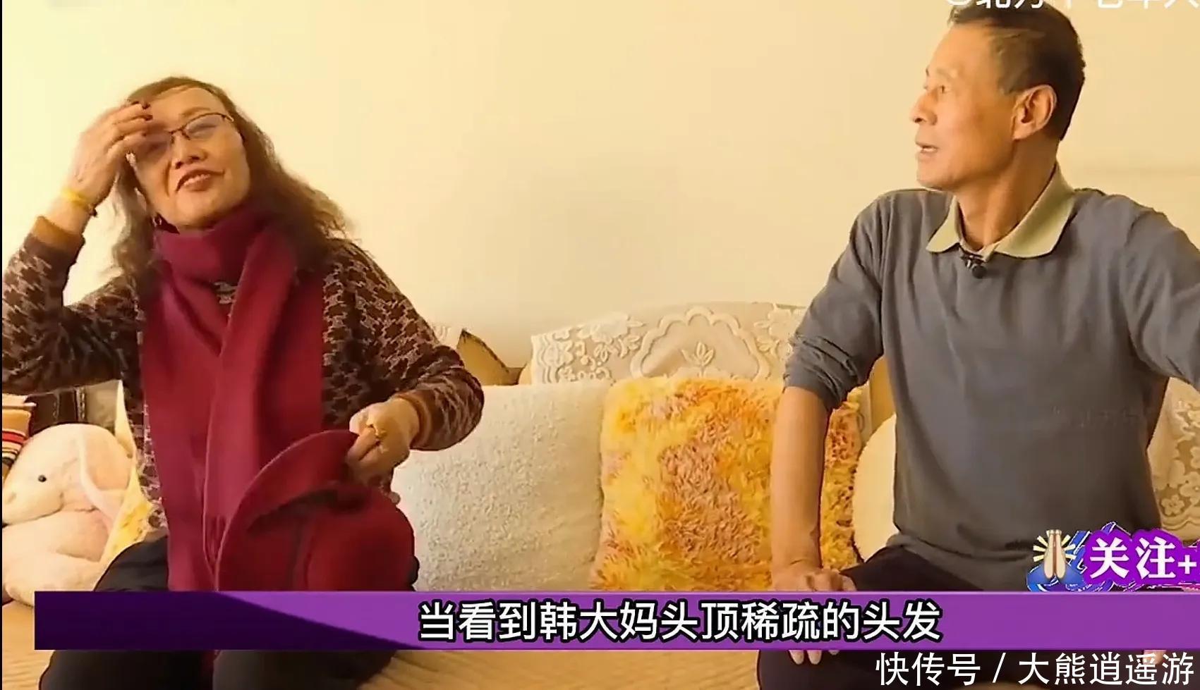韩大妈看到自己头发的问题没能遮盖住,然后就大胆地说出了实情,她说头顶上的头发比较稀少,早些年掉了好多头发,由于女的头发掉了不怎么好看,所以韩大妈便买了一顶假发戴着,刚刚跳扭秧歌舞蹈的时候不摘帽子就是怕帽子掉落下来。